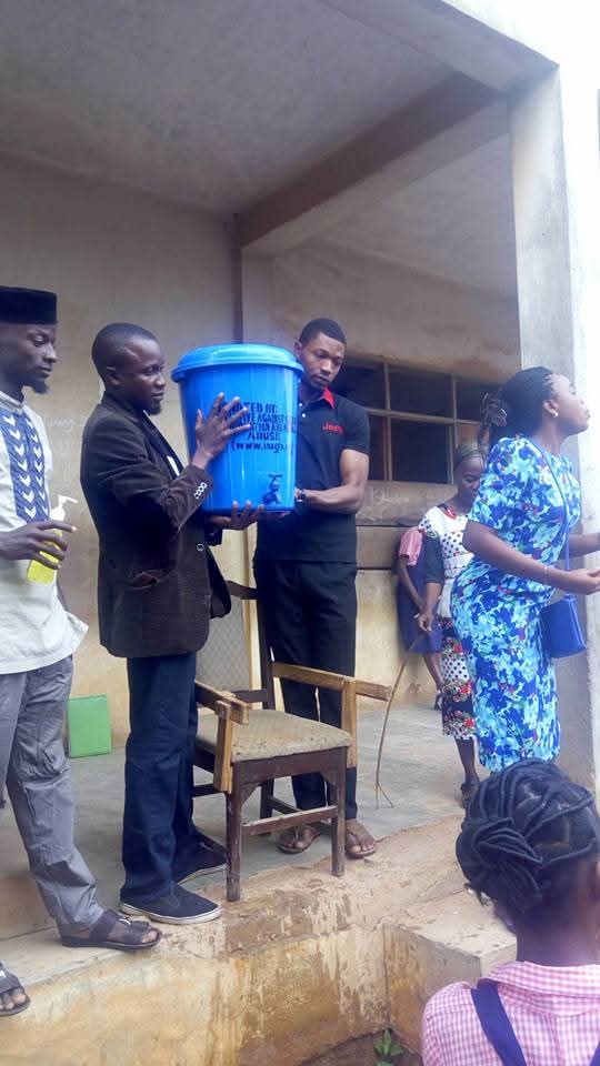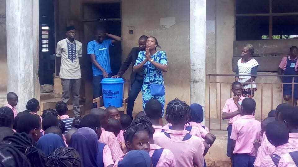 Sensitization program to Bashorun Junior High School, where students were thought the techniques involved in hand washing.